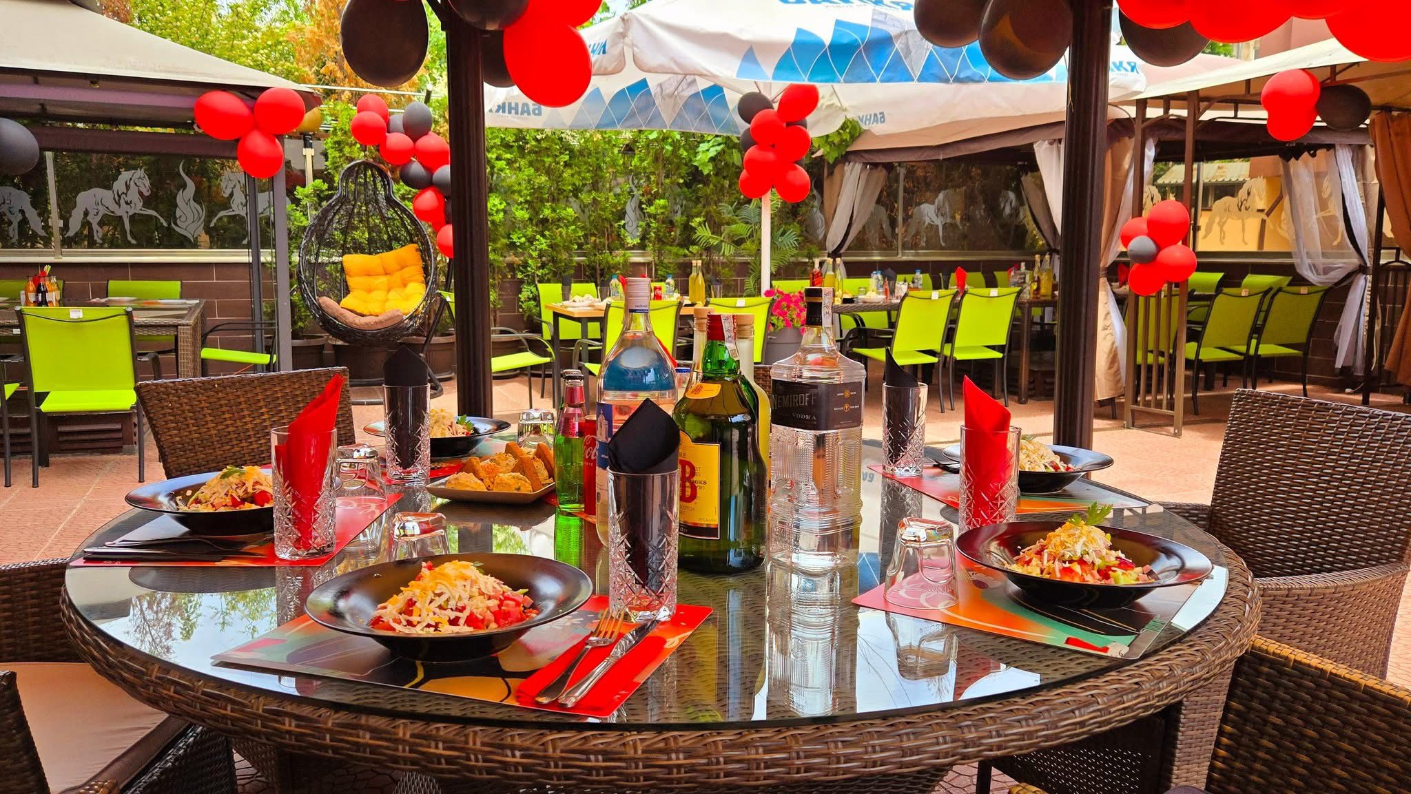 Откритата ни градина е истински оазис – просторна и уютна. С капацитет от 100 места, тя е идеалното място за летни обеди и вечери под открито небе. Тук гостите могат да се насладят на приятна атмосфера и домашно приготвени ястия.